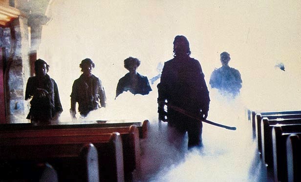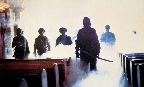 The fantastic cinematography helps to animate the evil qualities of the fog. By using techniques such as Chiaroscuro, Dean Cundey enhances the ghostly qualities of the undead hiding amongst it to a dreamlike degree. Could there exist a more perfect image for encapsulating the spirit of the campfire ghost story movie than apparitions shambling out of the mist? Other than John Houseman‘s creepy old ass sat around a log fire telling spooky tales in the film’s opening sequence, of course. That man could make a Toy Story character sound like the voice of doom.