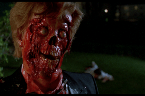 Opening with a minor alien invasion in 1959, director Fred Dekker quickly introduces his eclectic key concepts: a young couple encounter the crashed experiment, resulting in the boyfriend being assimilated by a space slug and an escaped mental patient hacking up his date. Flash forward twenty-seven years, and a couple of feckless college kids inadvertently help spread the original contamination; triggering a zombie apocalypse. Dekker’s primary skill is weaving deftly together a playful take on B movie clichés without ever having to resort to anything quite as lowly as outright mockery.