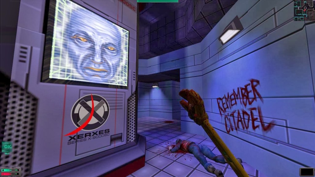 It’s worth noting that SS2 is hard. Resources are harder to find than Liz Truss’ principles and, being a late Nineties PC game, you’re forced to put skill points into everything from hacking to nose-picking. This can lead to the awkward situation later on in which you put all your skill points into nose-picking, only to that find that you now need arse-picking instead. On the one hand, I appreciate that it doesn’t hold your hand throughout, like a masked gentleman at the masquerade ball leading you through the dance. But like when it turns out the bloke’s Vincent Price, I’m not going to live long enough to appreciate the life lesson. Of the three classes, the (in the) Navy class is probably the most useful as it focuses on hacking and repairing – two things you’ll be doing a lot of in this game. Hacking is pretty fun, taking the form of a node connecting mini-game. The same can’t be said for repair, which comes up often as the weapons in this game have the functionality of a bike made entirely out of paperclips and elastic bands.