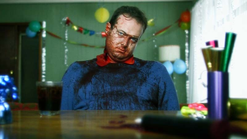 Gentry plays with gallows humour here, mostly involving Anna’s attempts at avoiding the reality of her mariticide and Jim’s general obliviousness of the situation. When Lewis enters the party, Gentry employs the use of slapstick and violent humour – until the scenario gets really nasty and Lewis graphically kills Anna with a toxic pesticide. I’m reminded of The League of Gentlemen, and not just because Anna’s dead husband looks somewhat like Steve Pemberton.